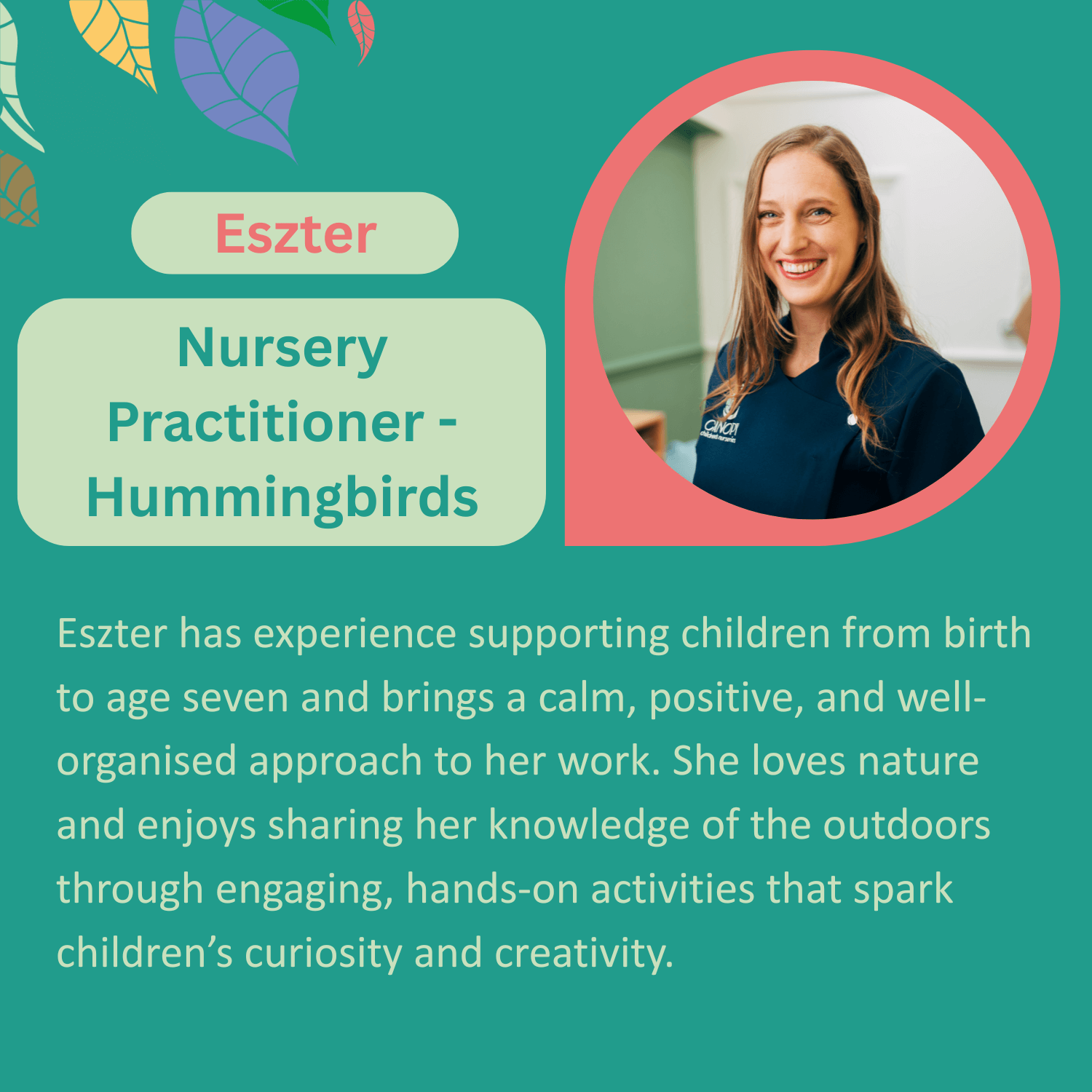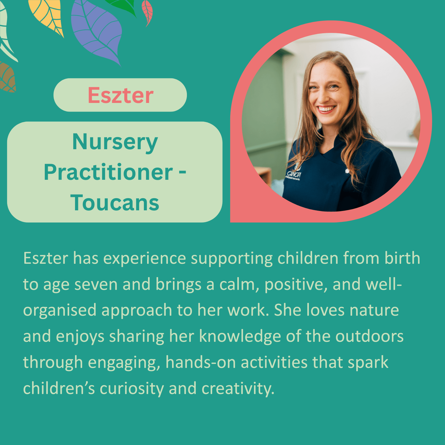 Meet the Canopy Bounds Green team, caring, skilled practitioners who create a calm, enriching environment where children can truly flourish.
